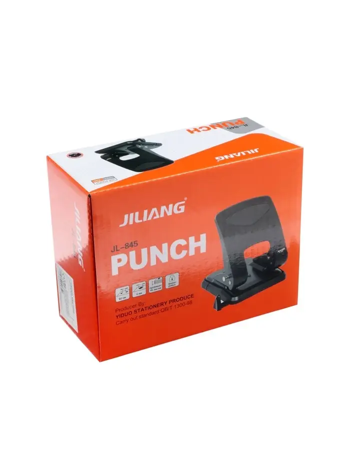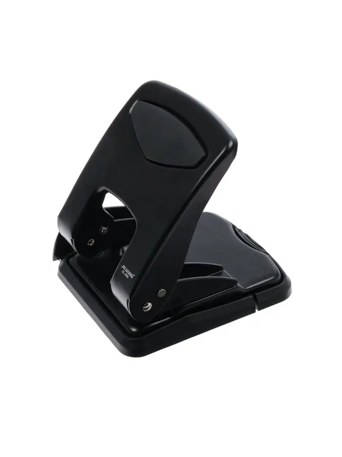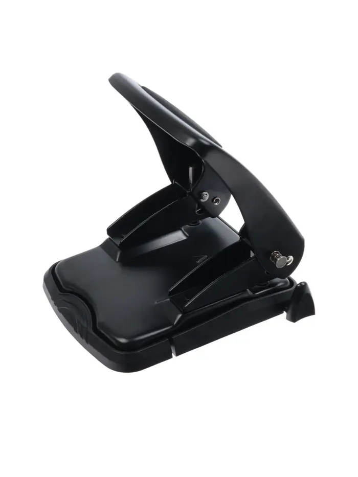 - Профессиональный металлический дырокол чёрного цвета.