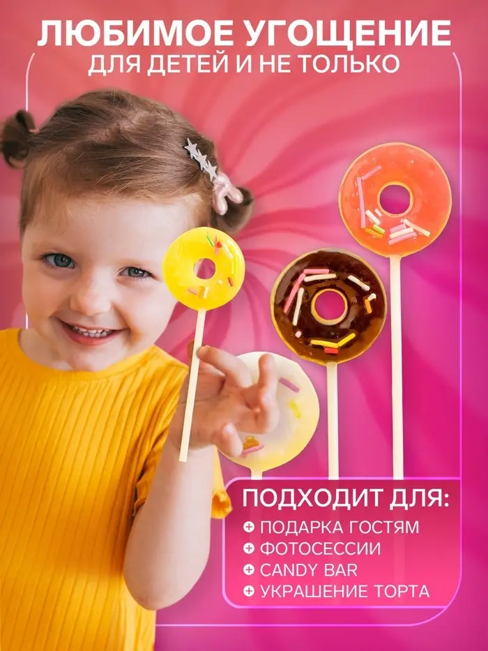 Леденец на палочке Донат, 15 г, набор 30 шт.