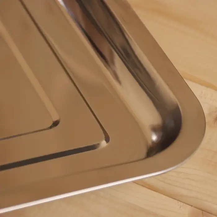 - Высококачественные материалы: Поддон изготовлен из прочной и долговечной нержавеющей стали, которая устойчива к коррозии и воздействию высоких температур.