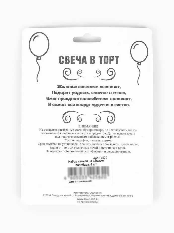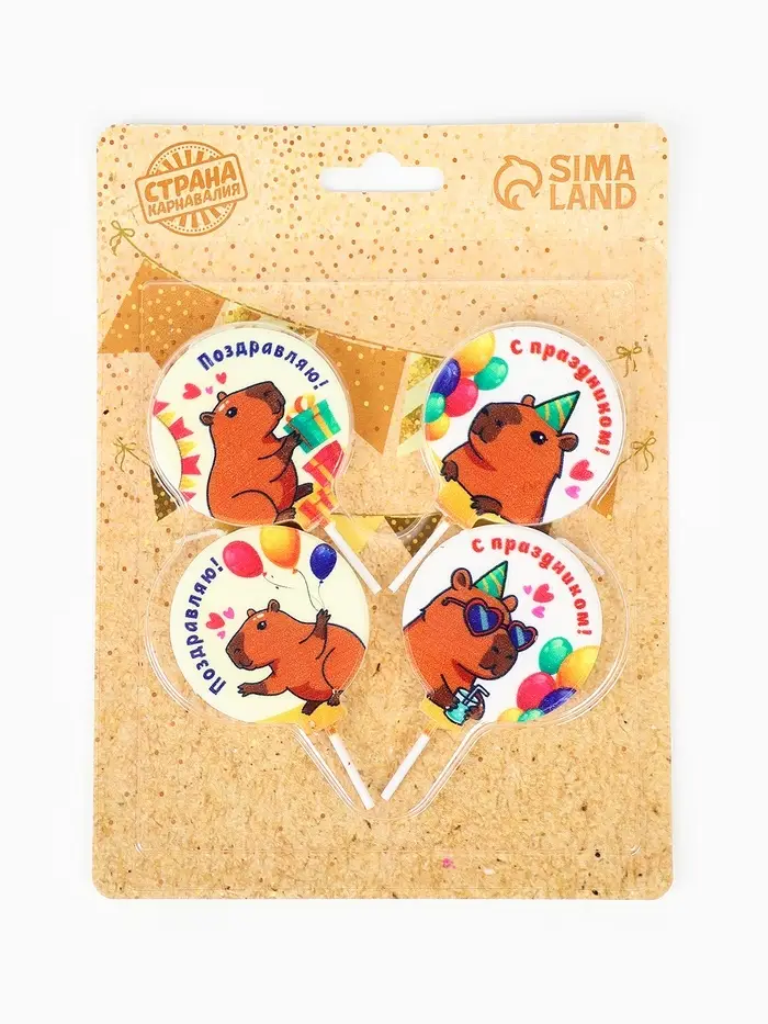 Набор свечей на шпажке "Капибара" 4 шт