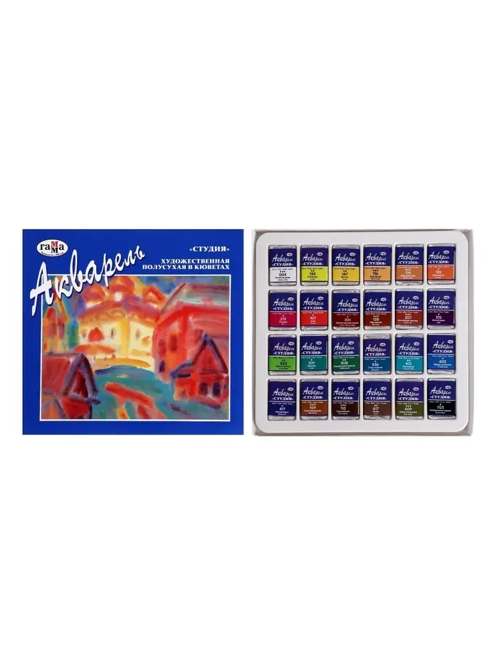 Акварель художественная в кюветах «Гамма. Студия», 24 цвета × 2.5 мл