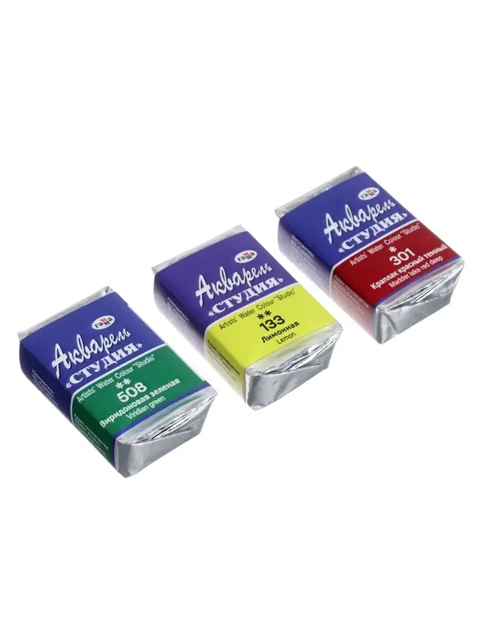 Сверхтонкие акварельные краски «Студия» на основе устойчивых пигментов. Яркие, насыщенные цвета, отличная светостойкость.