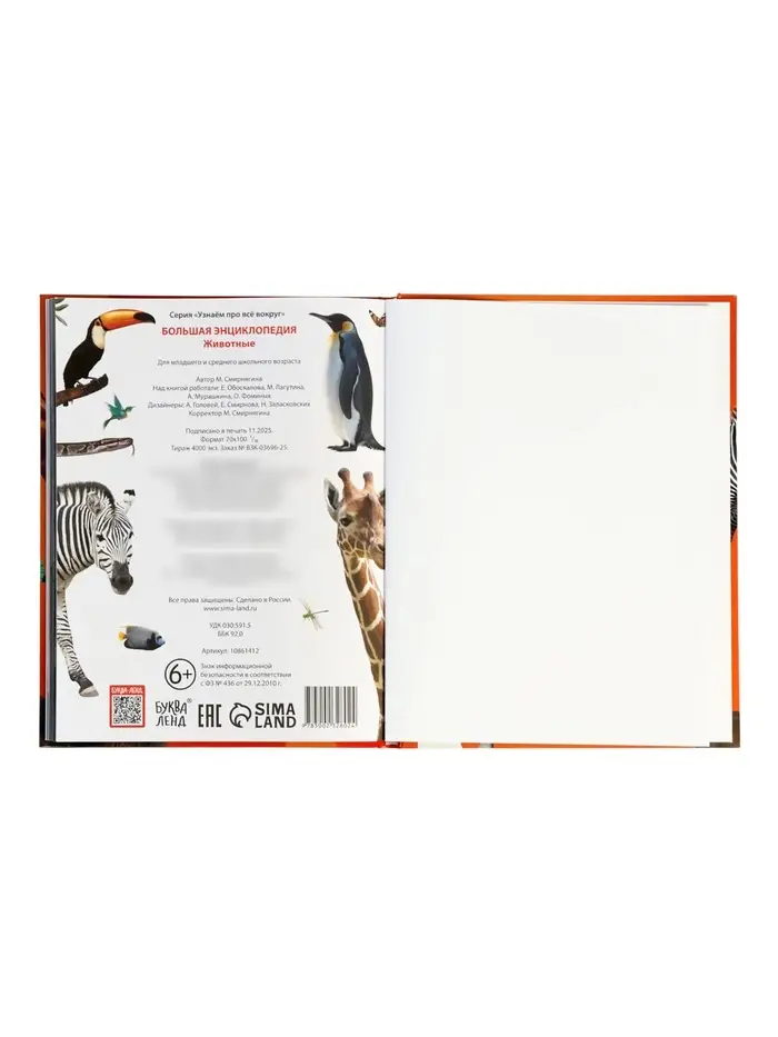 Энциклопедия в твёрдом переплёте "Животные", 128 страниц