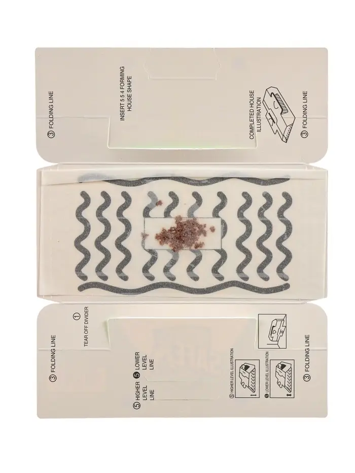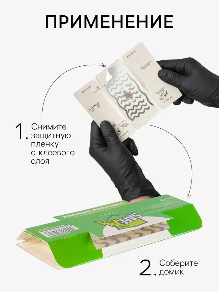 - Готовые к использованию домики-ловушки: не требуют приготовления приманки или активации. Просто снимите защитную пленку и разместите ловушку в нужном месте. Компактная конструкция в виде домика малозаметна и защищает клеевой слой от пыли.