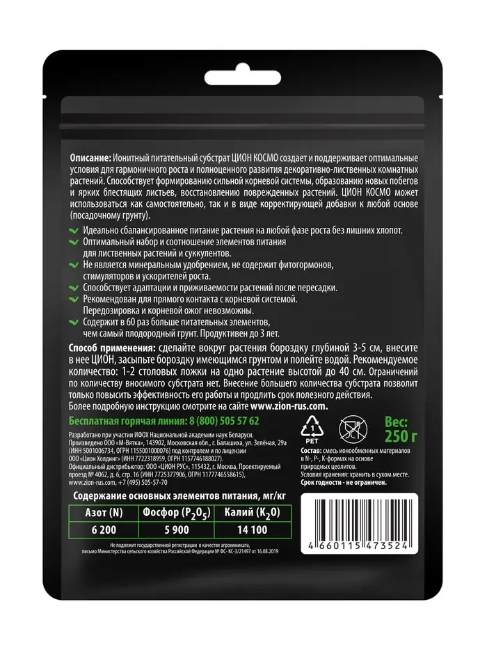 Субстрат ионитный 250 гр для Комнатных растений "ZION"