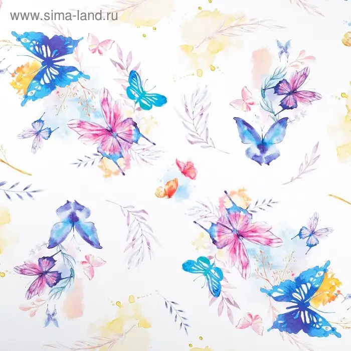 Бумага упаковочная глянцевая «Акварельные бабочки», 70 х 100 см