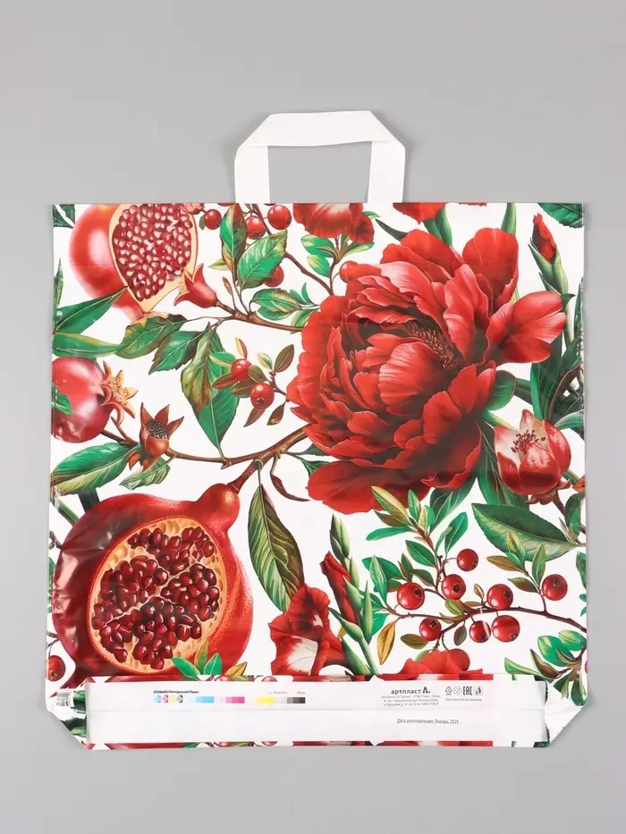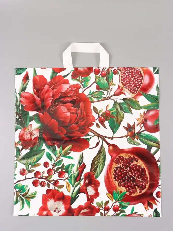 Пакет "Цветок Граната", полиэтиленовый с петлевой ручкой, 45 х 45 + 3 см, 60 мкм