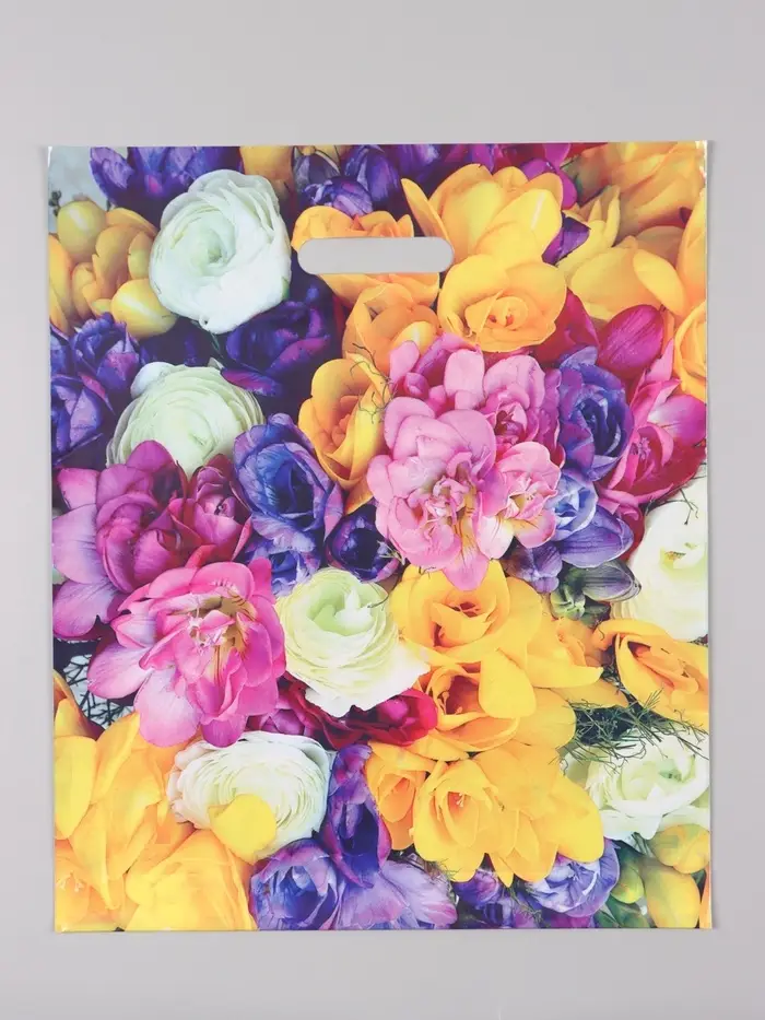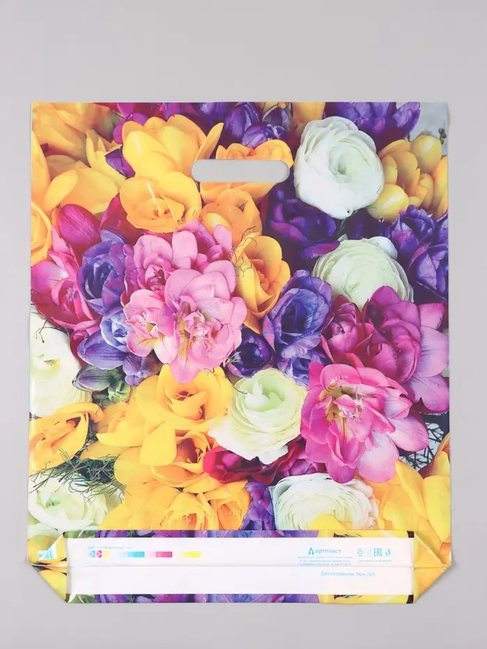 Пакет "Весенний букет", полиэтиленовый с вырубной ручкой, 38 х 45 + 3 см, 60 мкм