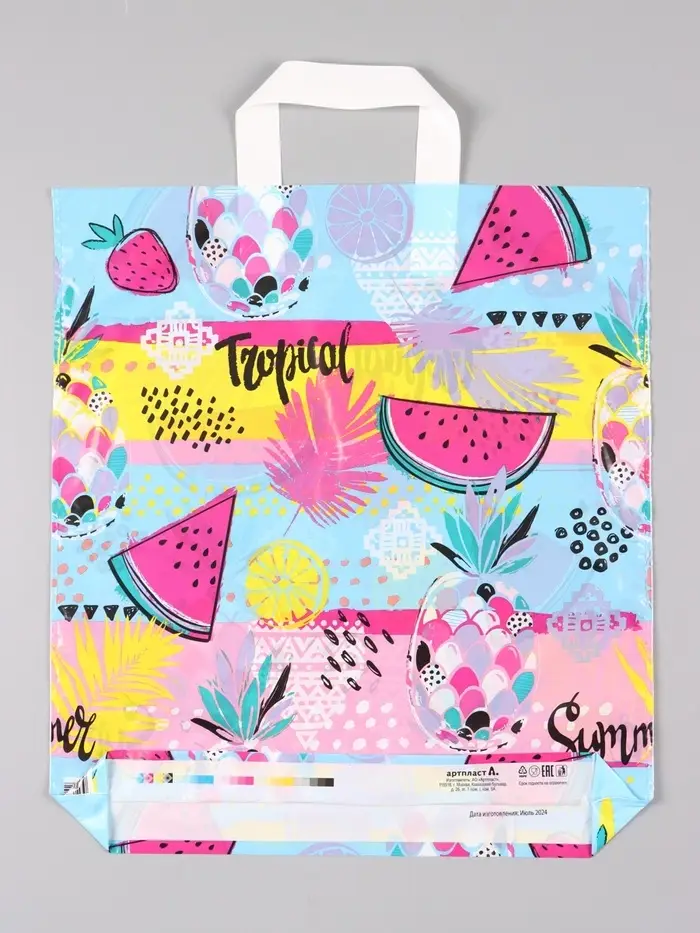 Пакет "Тропические фрукты", полиэтиленовый с петлевой ручкой, 38 х 42 + 3 см, 37 мкм