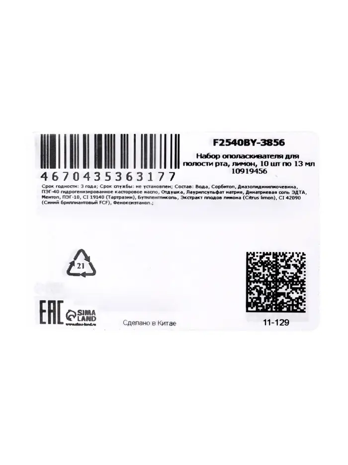 Каждый стик содержит 13 мл готового к применению ополаскивателя — оптимальный объём для одного полноценного полоскания. Индивидуальная упаковка предотвращает контакт с внешней средой, исключает необходимость дозирования и обеспечивает максимальный комфорт при использовании. Компактные стики удобно брать с собой на работу, в поездки, спортзал или использовать после еды вне дома.