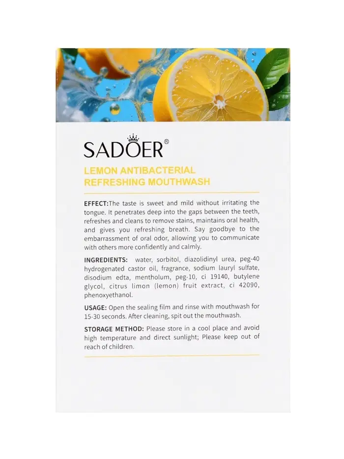 Набор антибактериального ополаскивателя для полости рта SADOER с лимоном — это практичное решение для чистоты, свежести дыхания и уверенности каждый день.