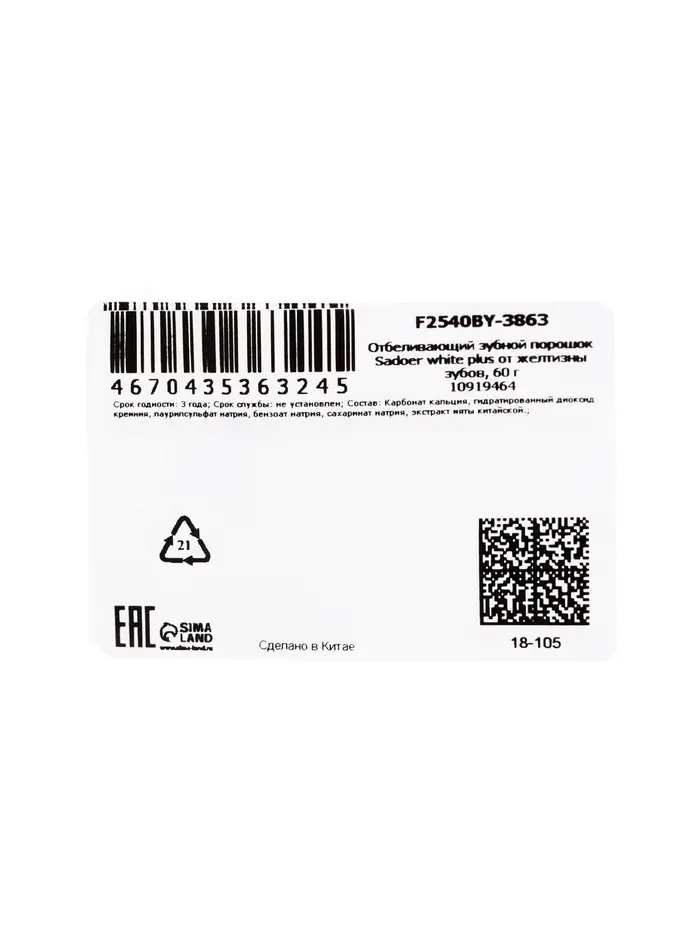 Отбеливающий зубной порошок SADOER White Plus — это простой и надёжный способ вернуть белизну зубов, свежесть дыхания и уверенность в улыбке каждый день.