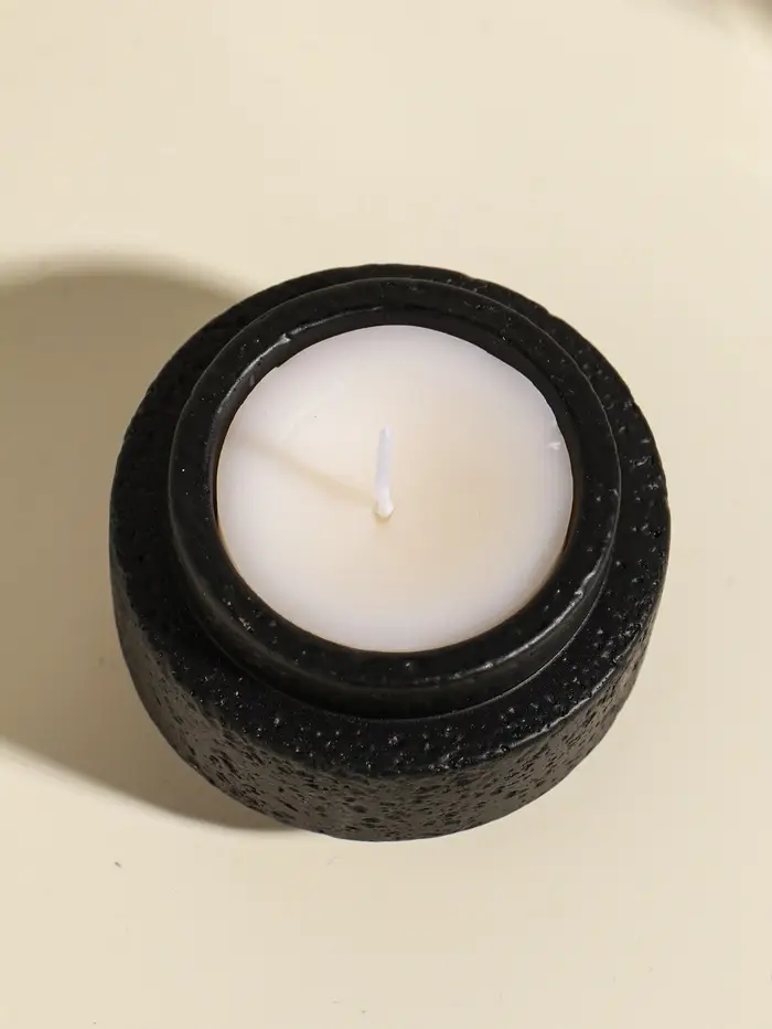 Свеча в вулканическом подсвечнике "Цилиндры" чёрная 8,1х8,1х5,4 см