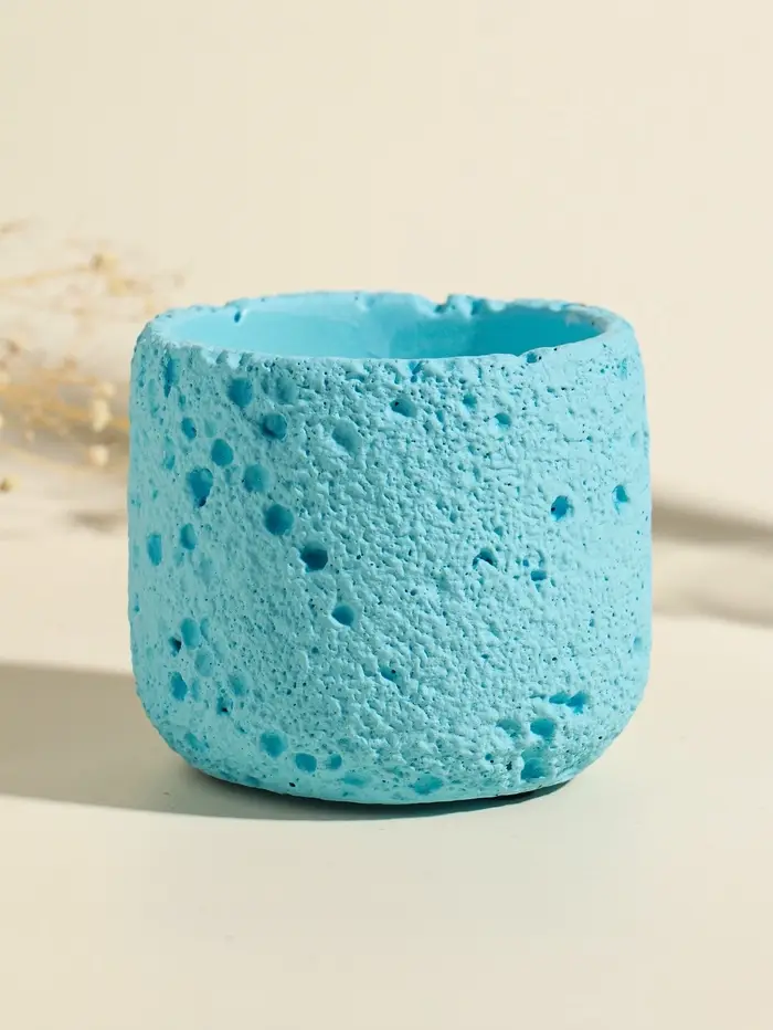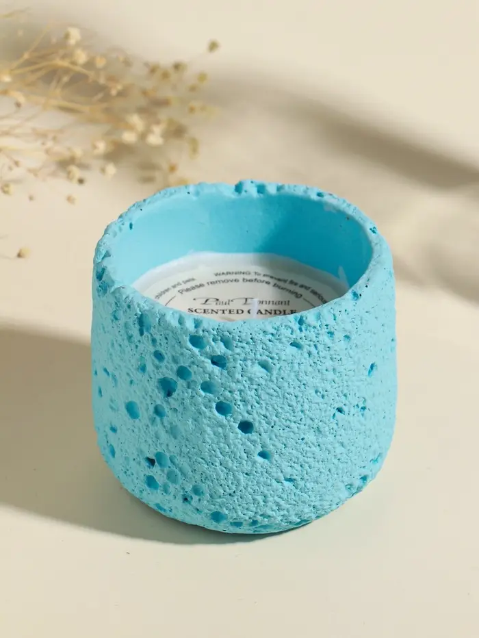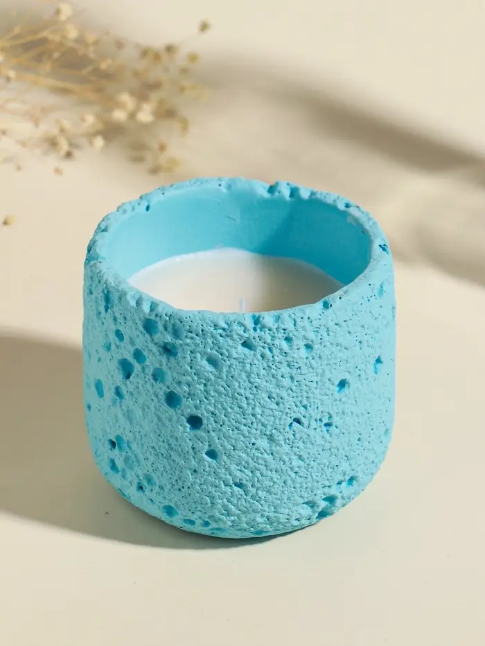 Свеча в вулканическом подсвечнике "Лава" голубая 8,5х8,5х7,5 см