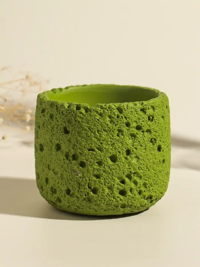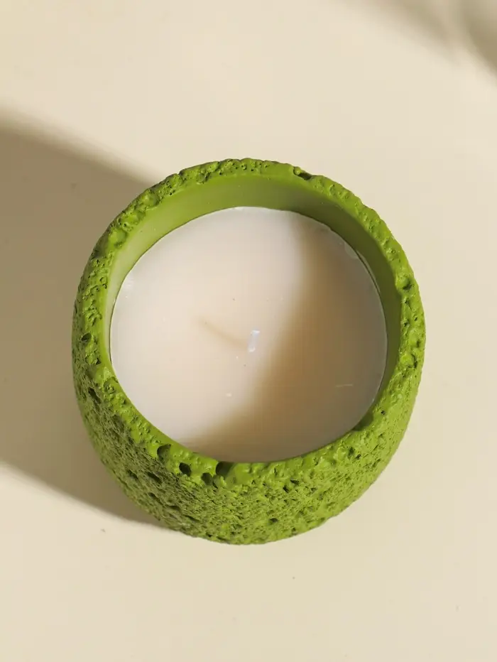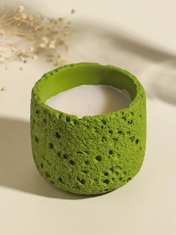 Свеча в вулканическом подсвечнике "Лава" зелёная 8,5х8,5х7,5 см