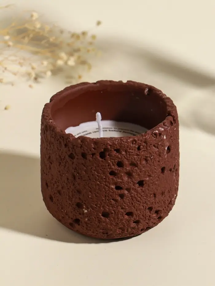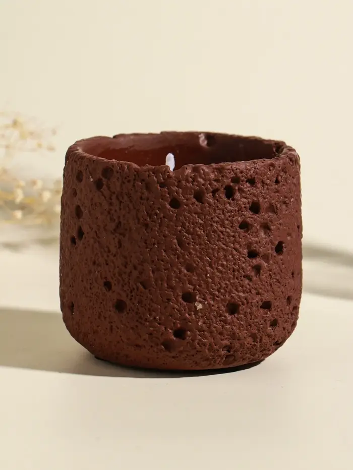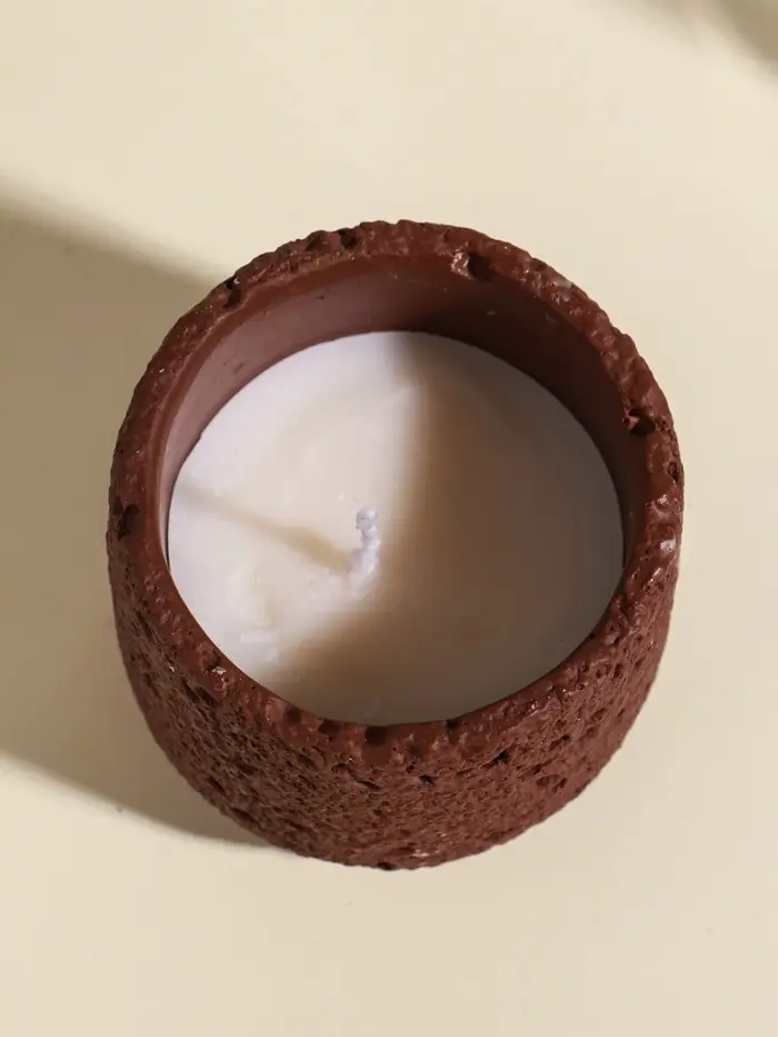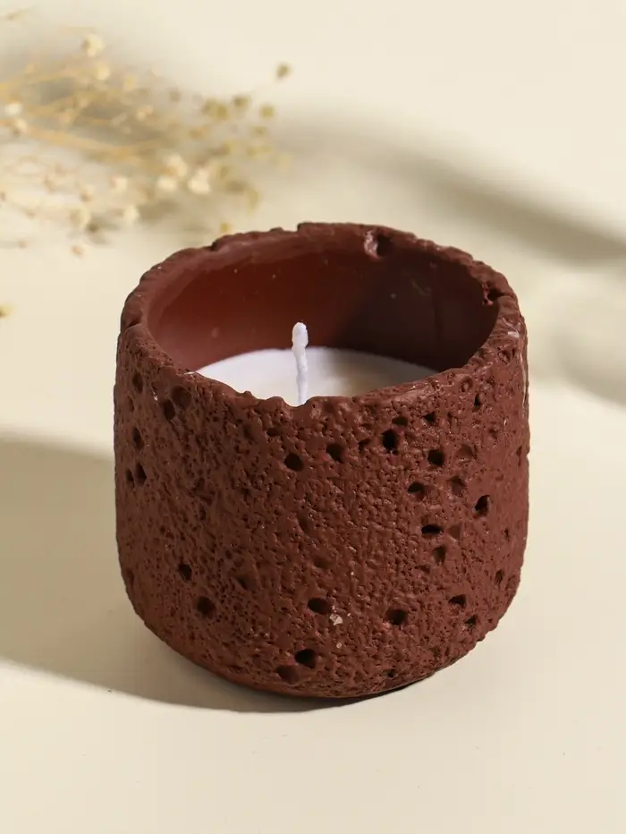 Свеча в вулканическом подсвечнике "Лава" терракот 8,5х8,5х7,5 см