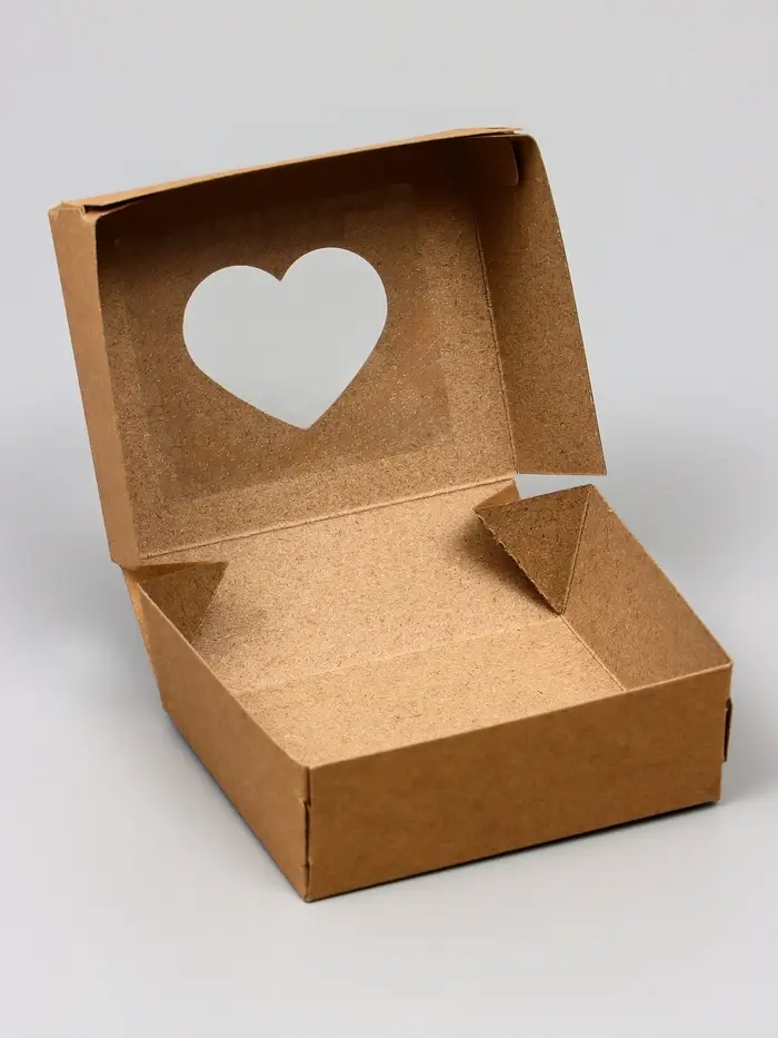 Миниатюрная упаковка для особенных моментов! Крафтовые коробки «Сердца» с окошком 10×8×3,5 см — это компактная упаковка для небольших десертов и сладостей. Небольшой размер и тематическое название создают решение для романтических подарков.