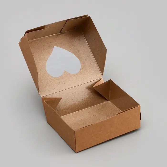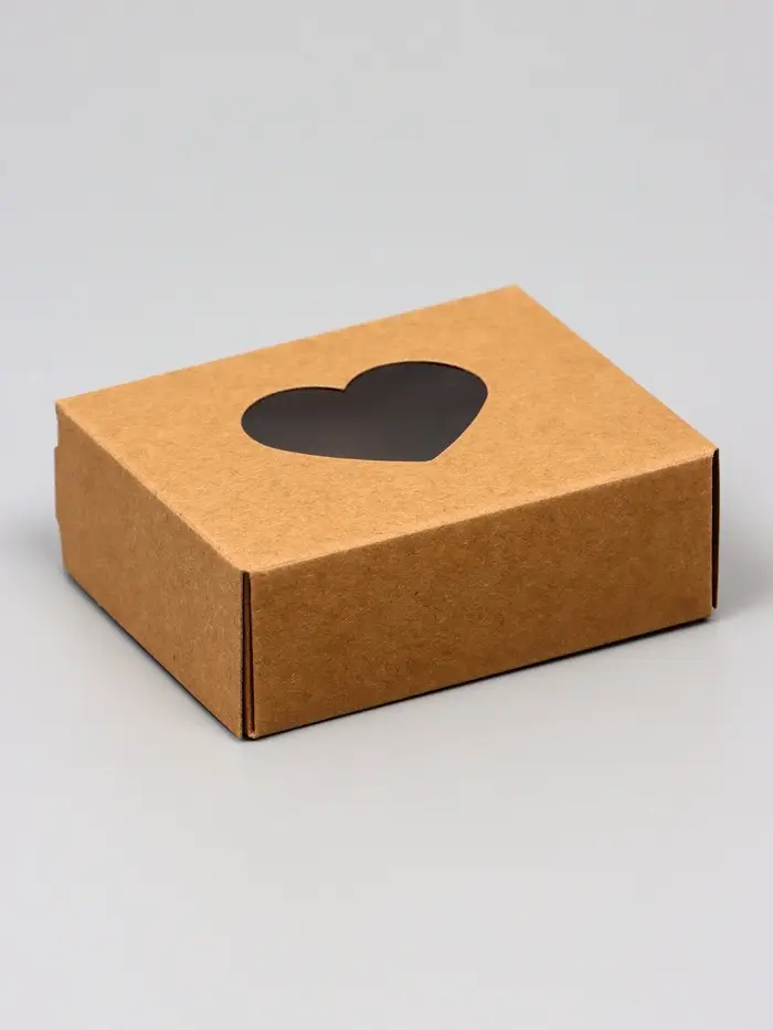 Коробка складная «Сердца», крафт, с окном, 10×8×3.5 см