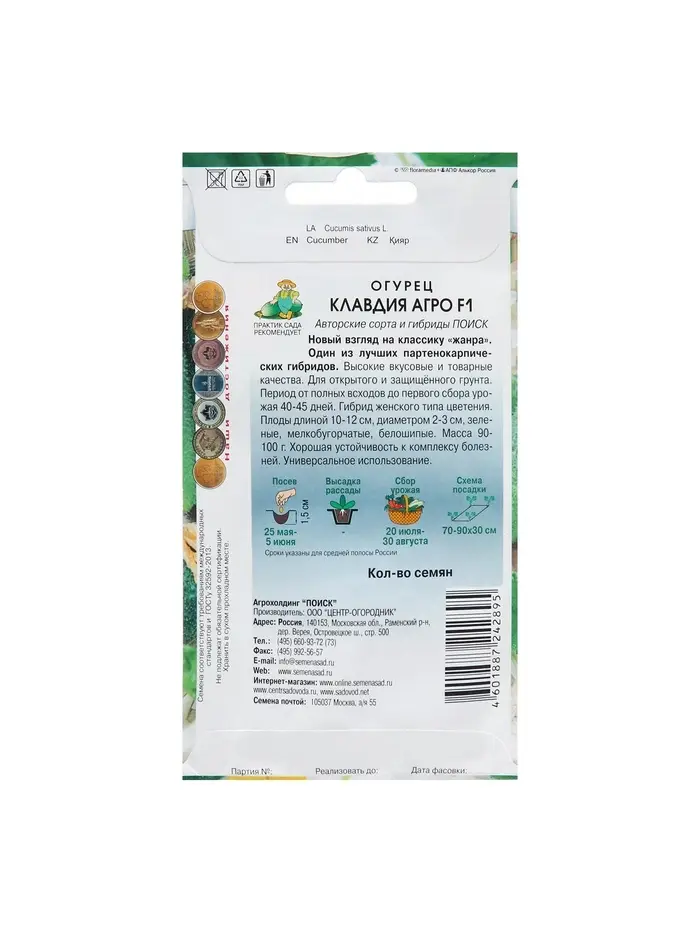 Семена Огурец «Клавдия Агро», F1, 12 шт., «Поиск»