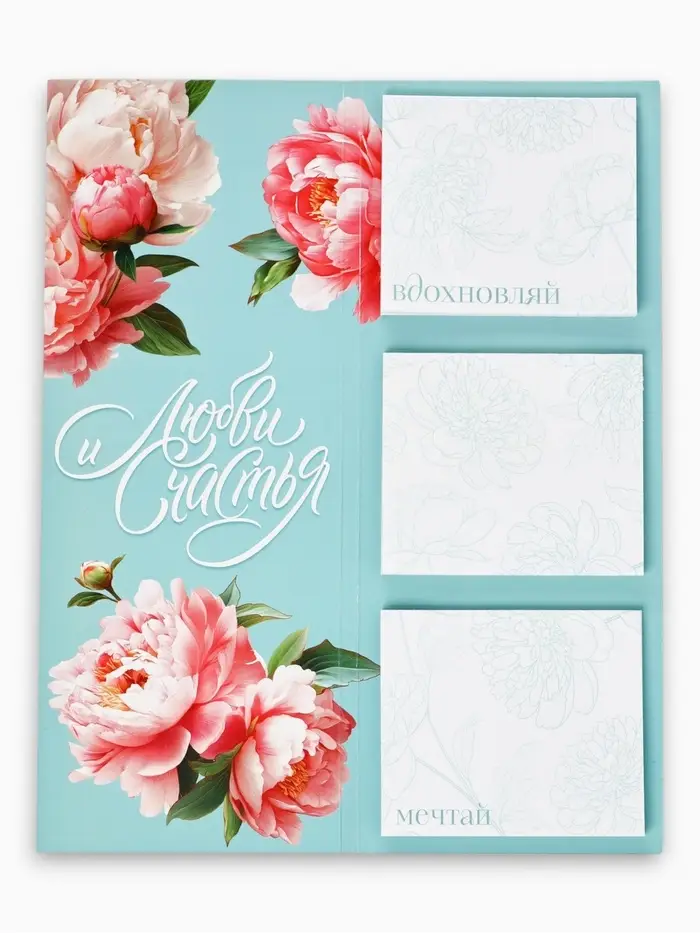 Блок для записей с отрывными листами, в открытке, 30 л. «С 8 марта. Бирюзовый»