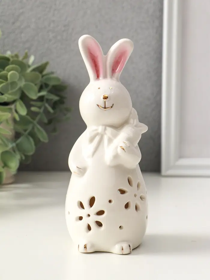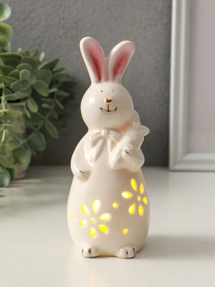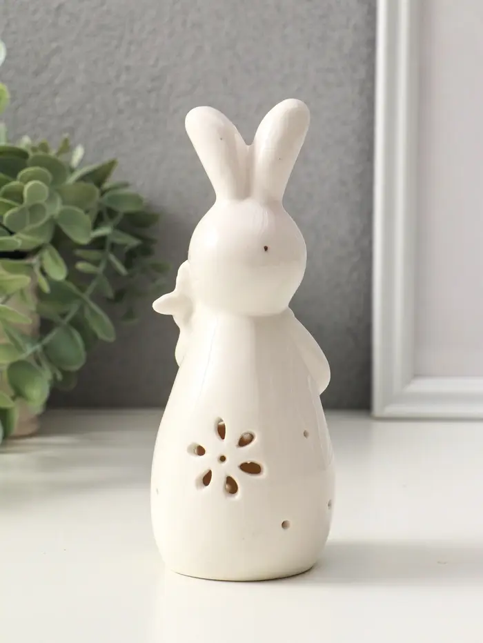 Сувенир керамика свет "Зайка с морковкой" белый 5х5,5х15,5 см