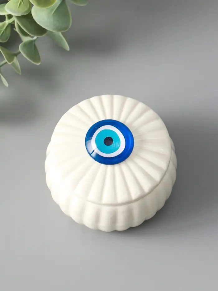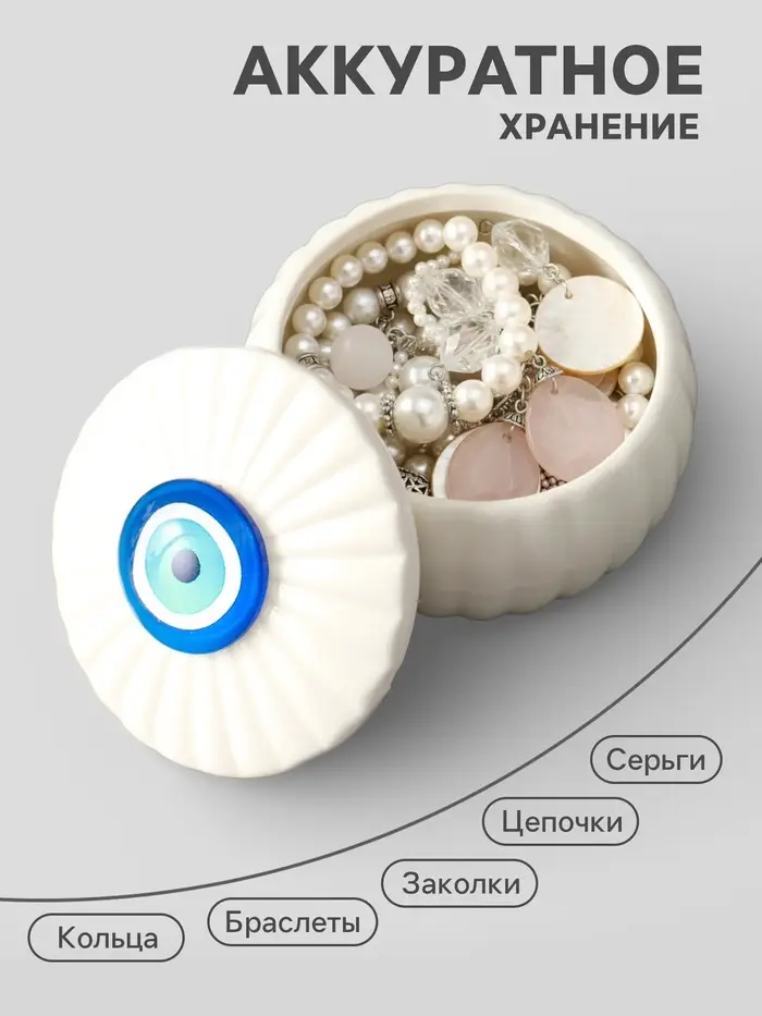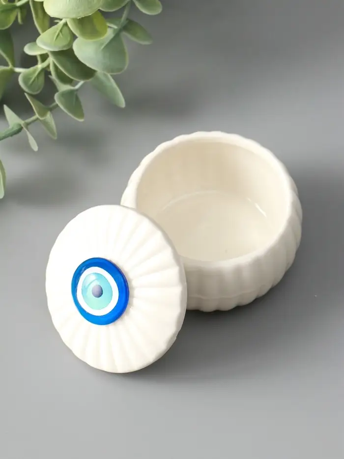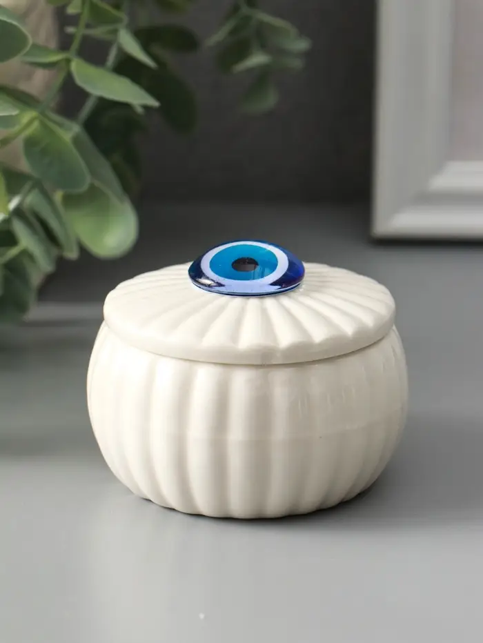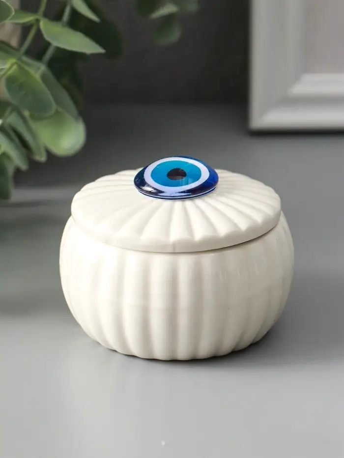 Шкатулка для украшений «Глаз от сглаза», с крышкой, белая, керамика, 7×7×5.3 см