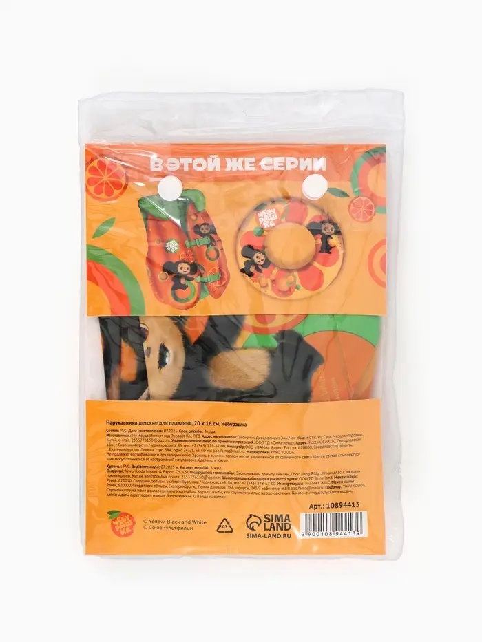 Нарукавники детские для плавания 20х16 см, Чебурашка