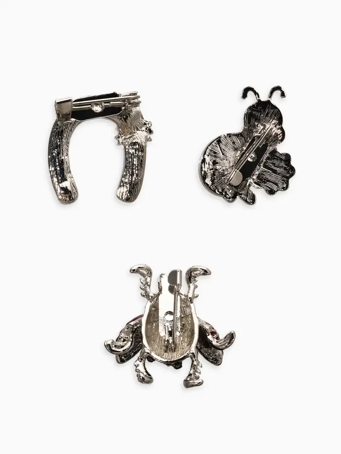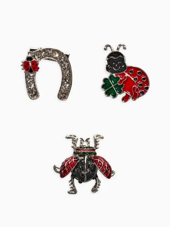 Броши "Счастливый случай" (набор 3шт), цветной в серебре