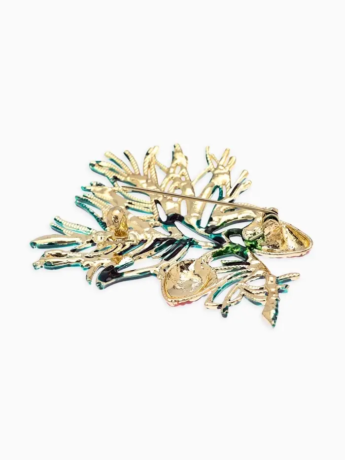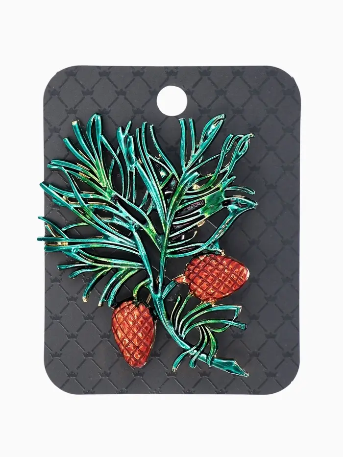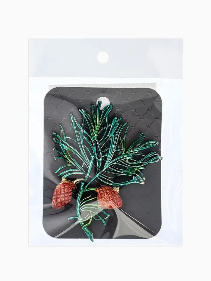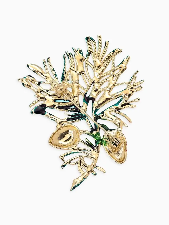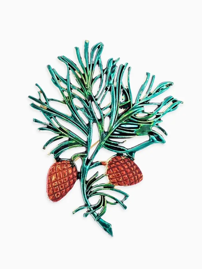 Брошь "Кедровая веточка", цвет коричнево-зелёный в золоте