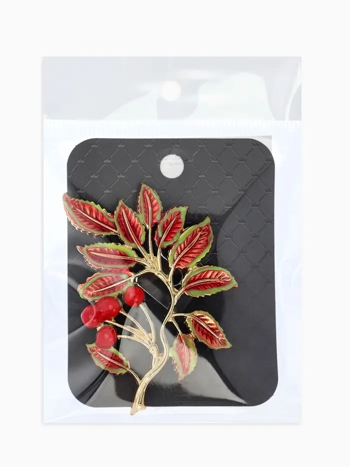 Передайте частичку русской души в своем образе! Эта брошь с калиной исполнена в теплых красках русской природы и подарит обладателю теплое воспоминание о родных пейзажах. Отличительная черта броши – искусно переданная фактура красной ягоды и листьев темно-зеленого оттенка, украшенная красивой золотой окантовкой.