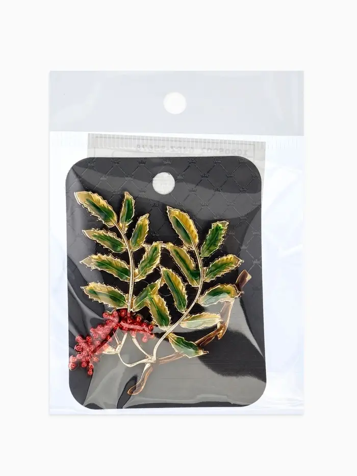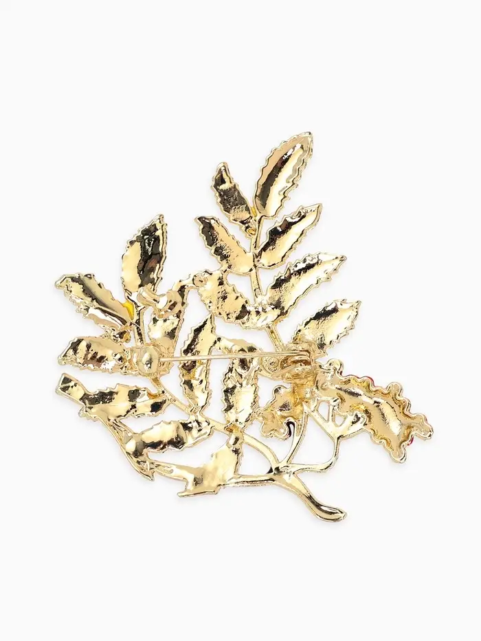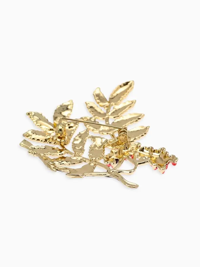 Брошь "Ветка Рябины", цвет красно-зелёный в золоте