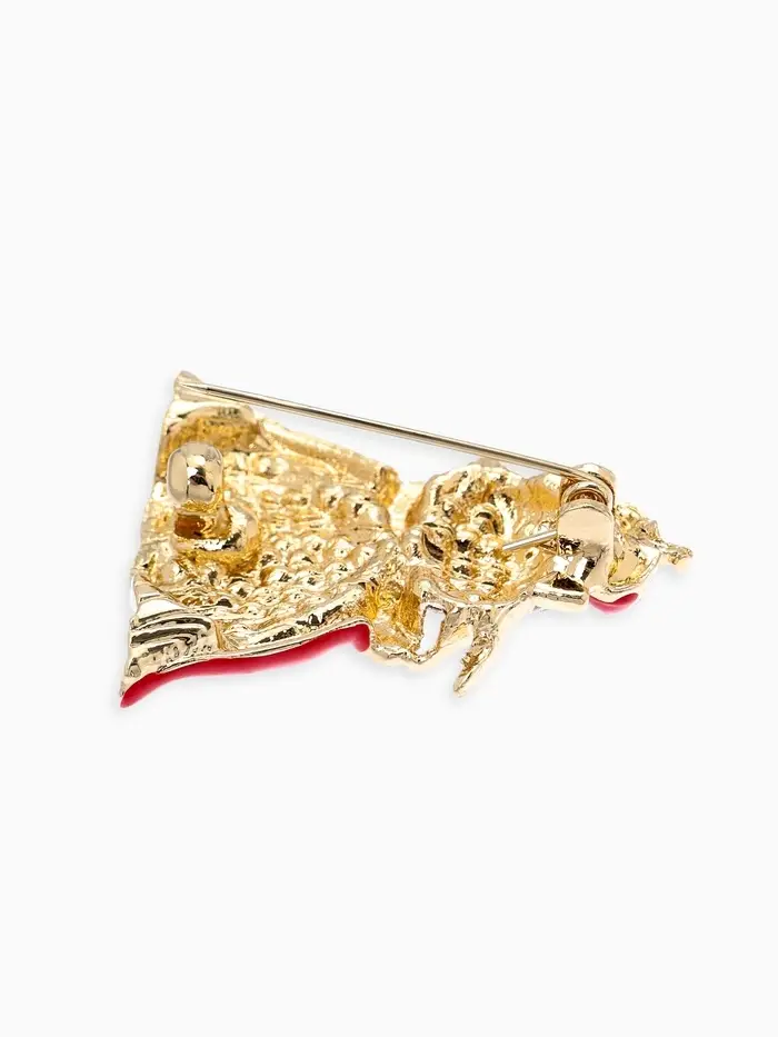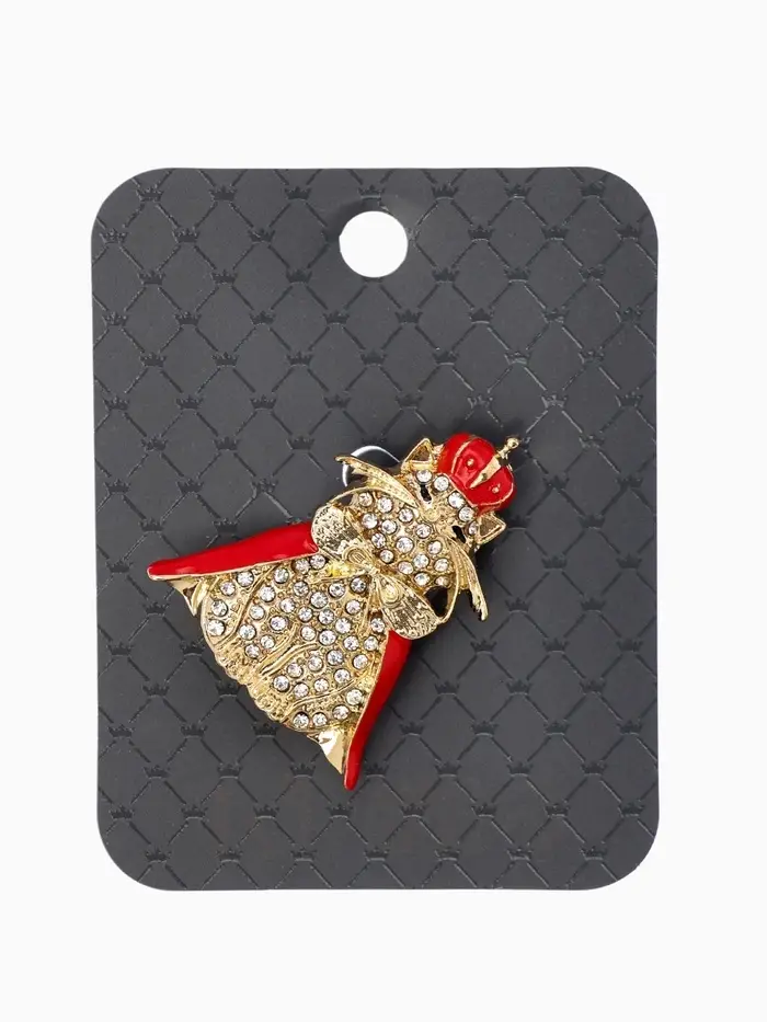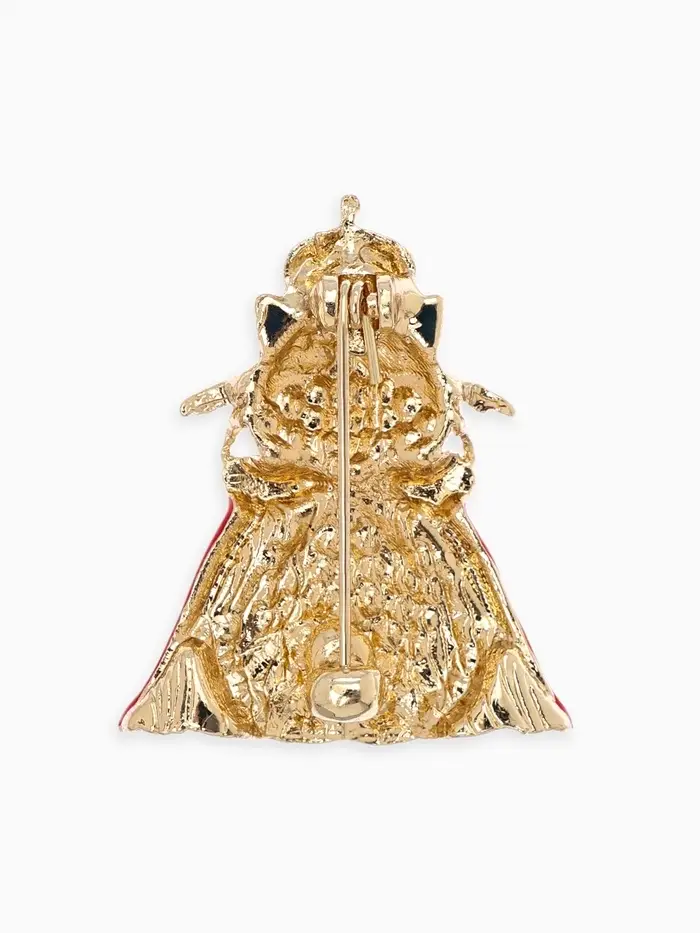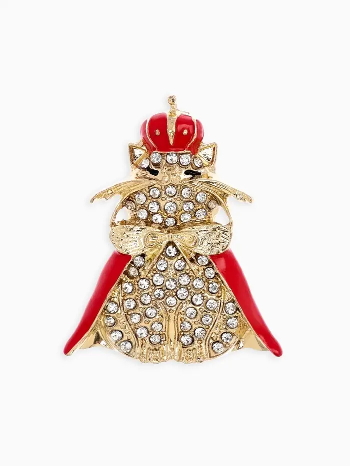 Брошь "Кошка Царица", цвет красно-белый в золоте