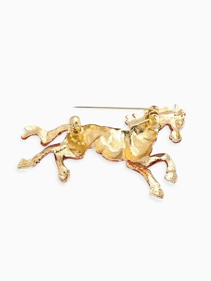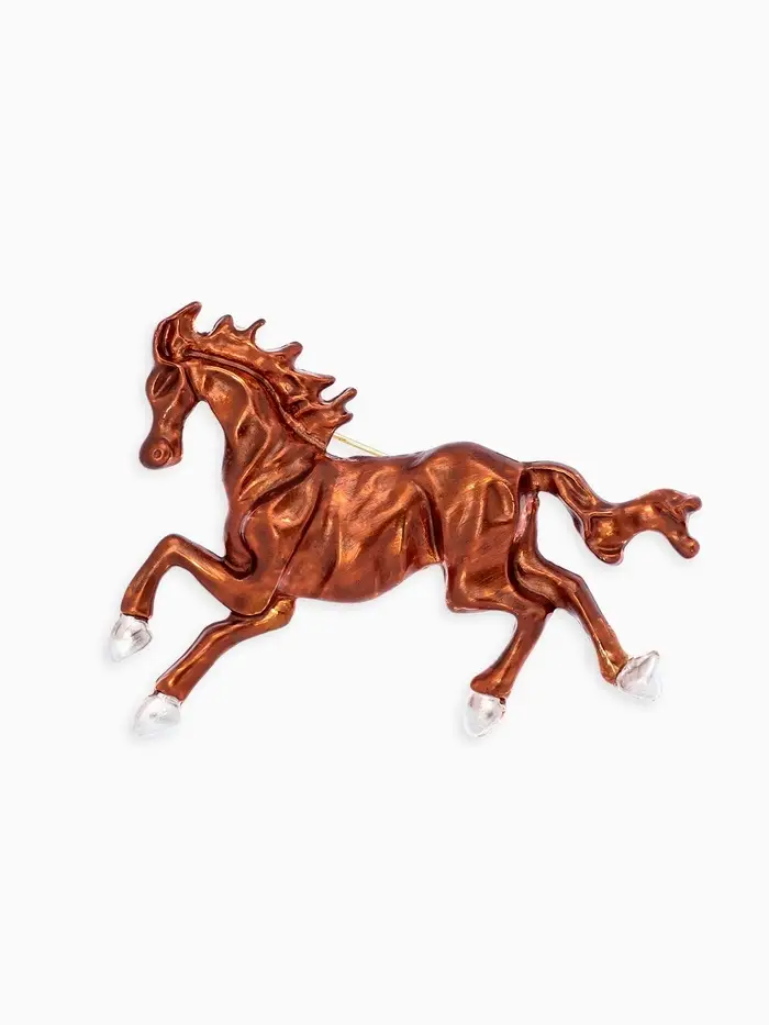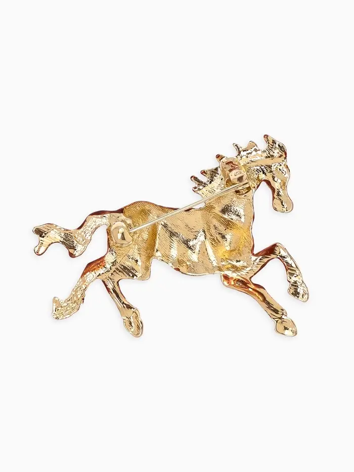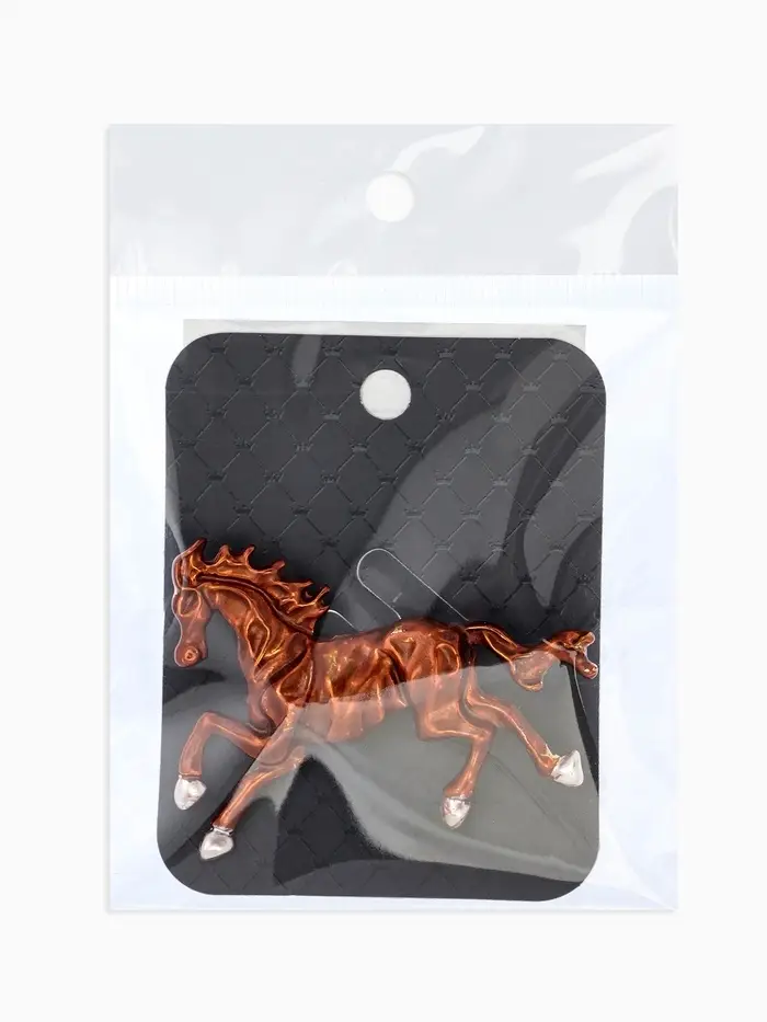 Брошь "Лошадь", конь степной, цвет коричневый в золоте