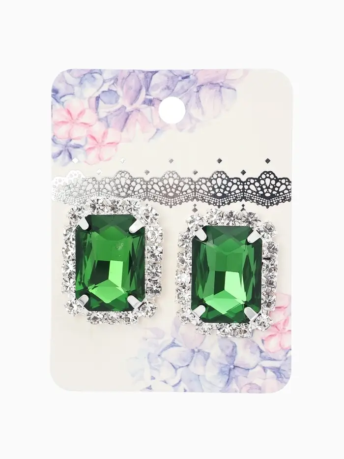 Серьги со стразами "Роскошь", прямоугольник, цвет зелёно-белый в серебре