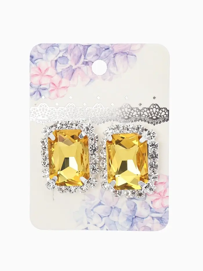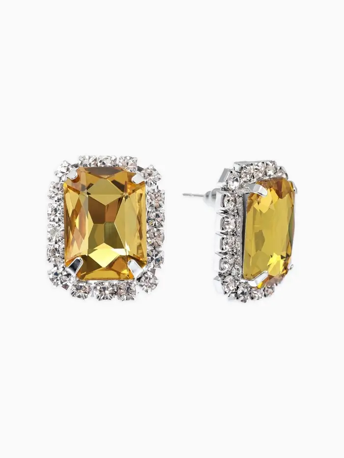 Серьги со стразами "Роскошь", прямоугольник, цвет жёлто-белый в серебре