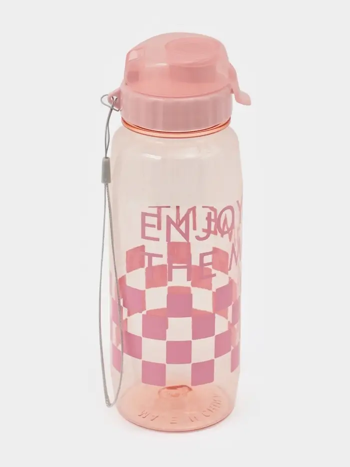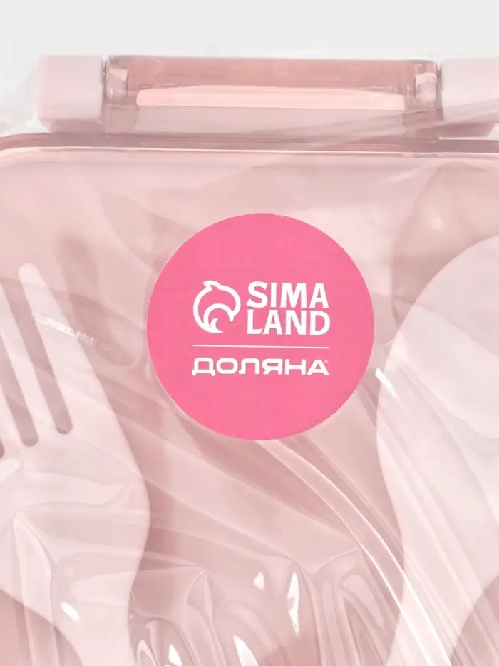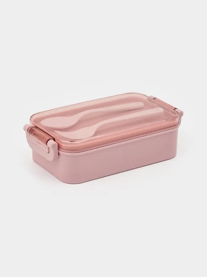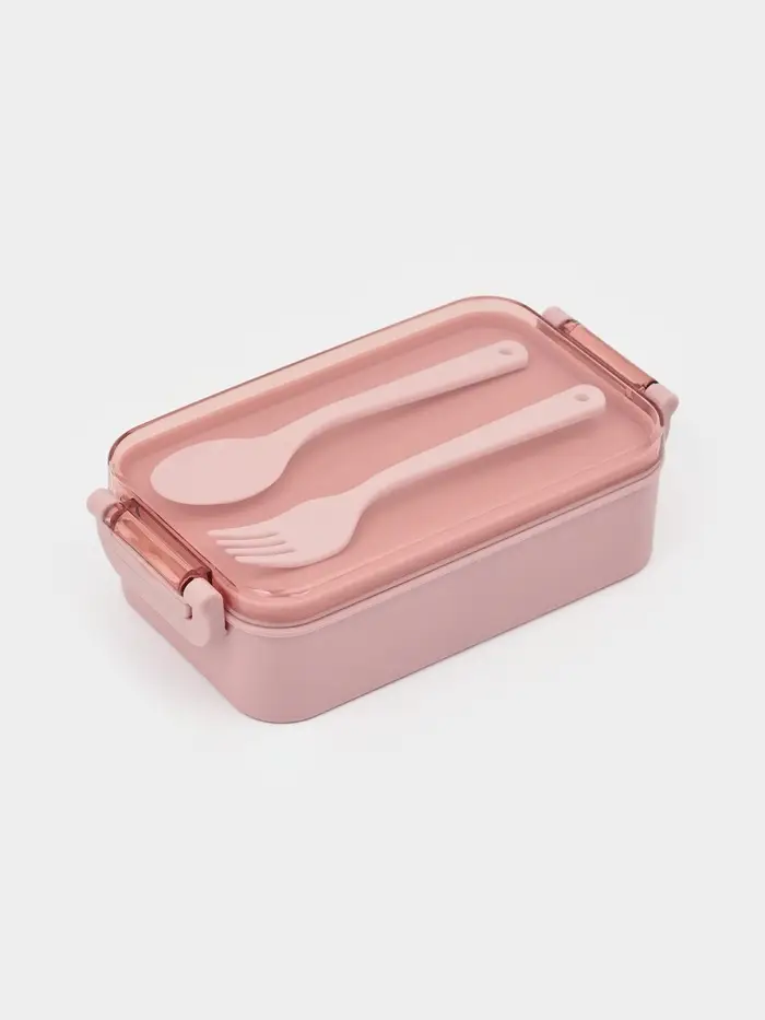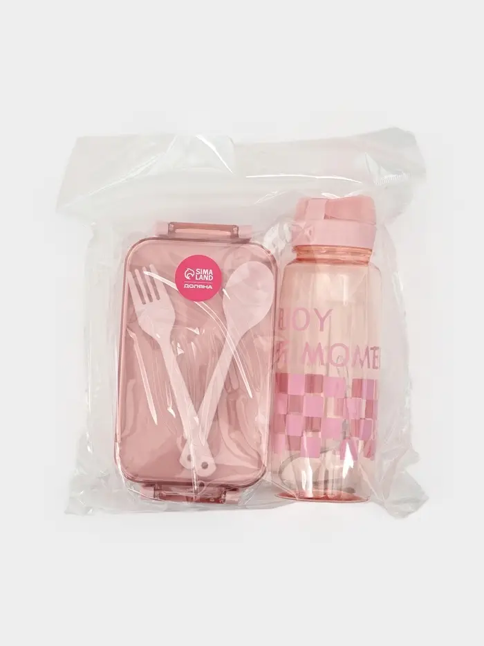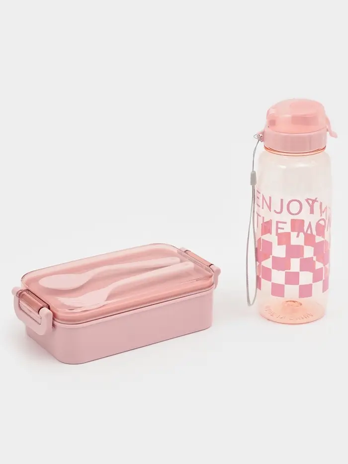 Ланч-бокс, 2 отделения, 2 яруса, с вилкой и ложкой, бутылкой 500мл,20х17х5,5 см,цвет розовый 10949