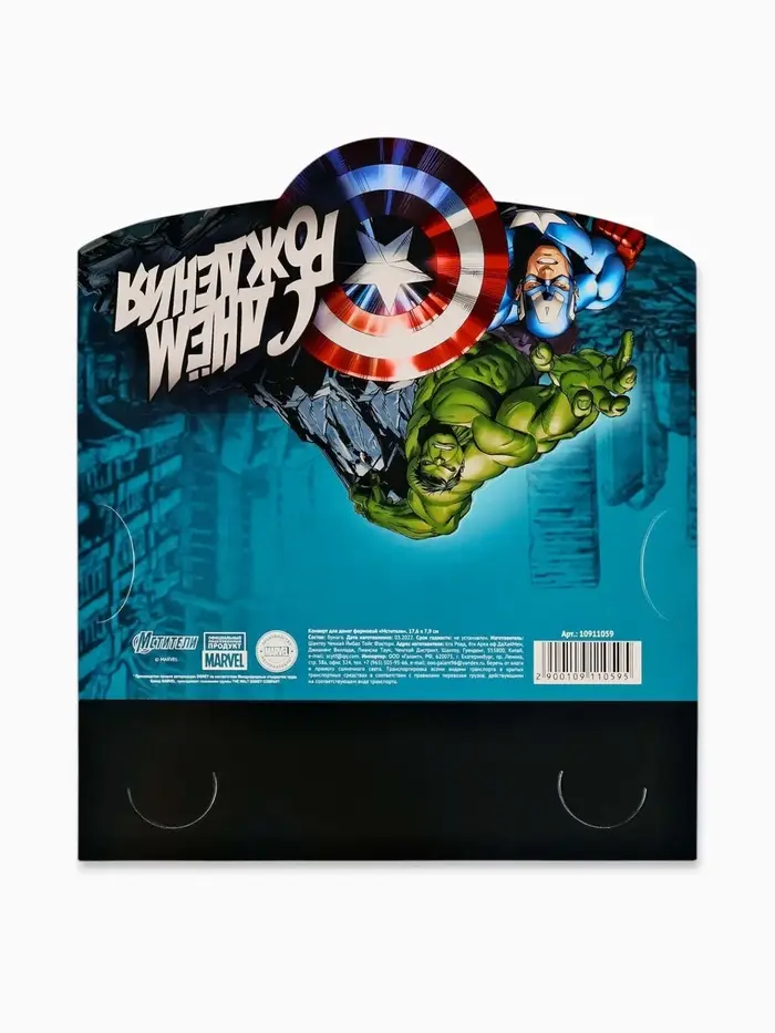 Конверт для денег формовой «Супергерои», 17.5 × 8 см