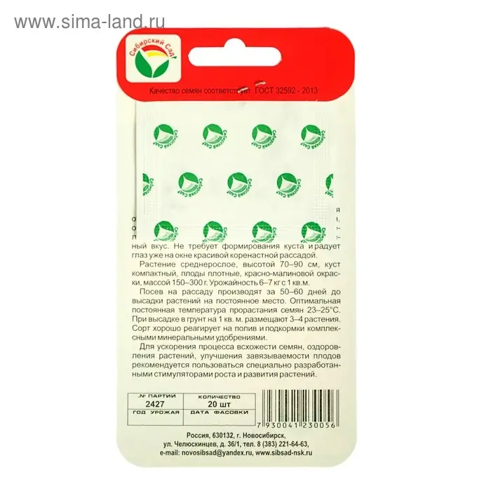 Условия выращивания. Посев на рассаду производят за 50 - 60 дней до высадки растений на постоянное место. Оптимальная постоянная температура на постоянное место. Оптимальная постоянная температура прорастания семян 23 - 25°С. При высадке в грунт на 1м2 размещают 3 - 4 растения. Сорт хорошо реагирует на полив и подкормки комплексными минеральными удобрениями. Для улучшения процесса всхожести семян, оздоровления растений, улучшения завязываемости плодов рекомендуется пользоваться специально разработанными стимуляторами роста и развития растений.