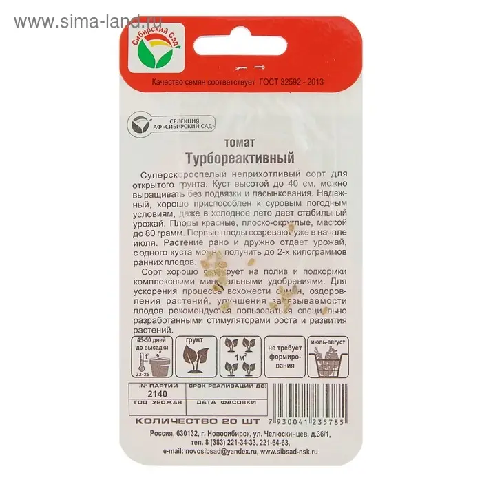 Семена Томат "Турбореактивный", суперскороспелый, детерминантный,низкорослый 20 шт