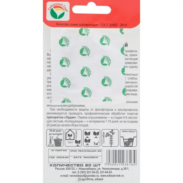 Семена Томат «Японский трюфель», красный, среднеспелый, 20 шт., «Сибирский сад»