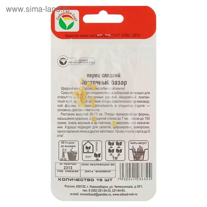 Среднеранний сорт сладкого перца сибирской селекции для открытого грунта и пленочных укрытий. Аккуратный, компактный куст, красивые крупные плоды классической призмовидной формы, хорошая урожайность в открытом грунте — основные достоинства сорта.