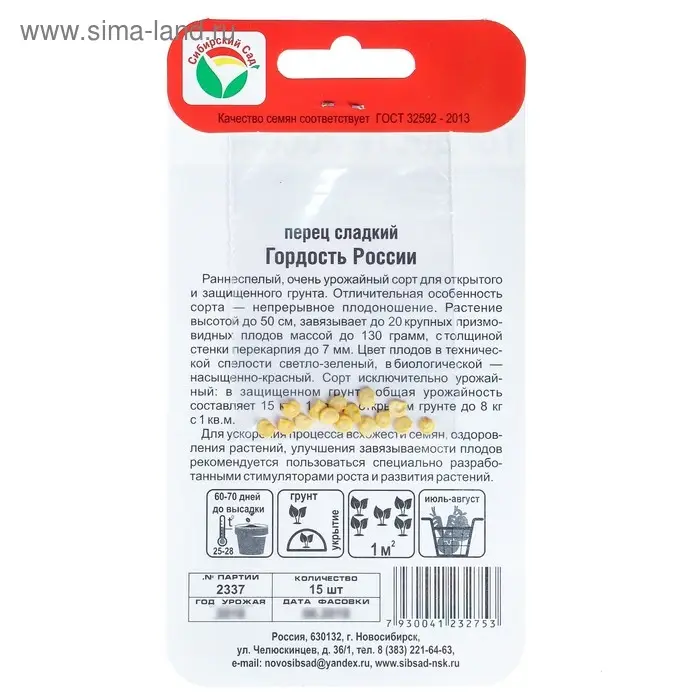 Семена Перец сладкий "Гордость России", 15 шт