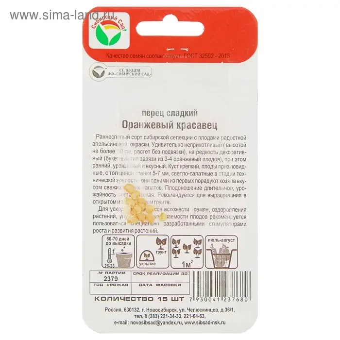 Семена Перец сладкий "Оранжевый красавец", 15 шт
