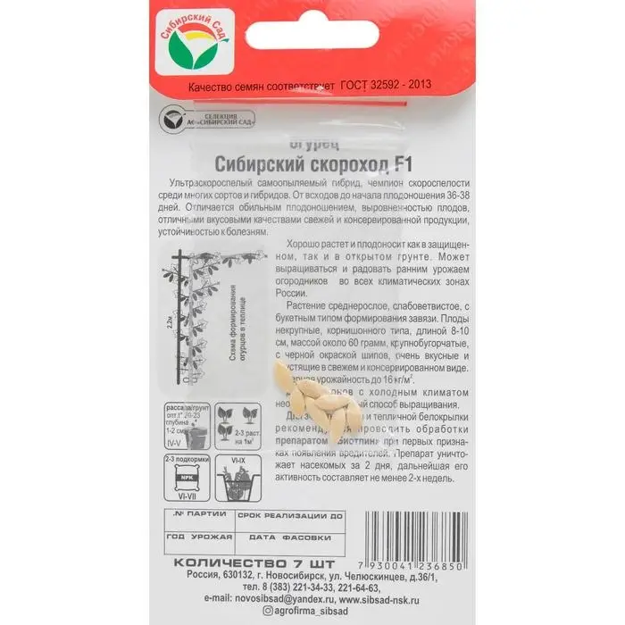 Семена Огурец "Сибирский скороход" F1, ультраскороспелый, партенокарпический, 7 шт