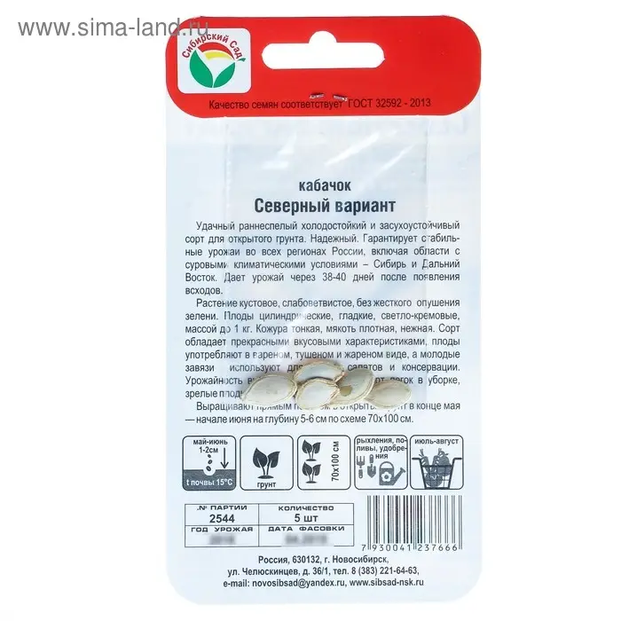Семена Кабачок "Северный вариант", 5 шт.