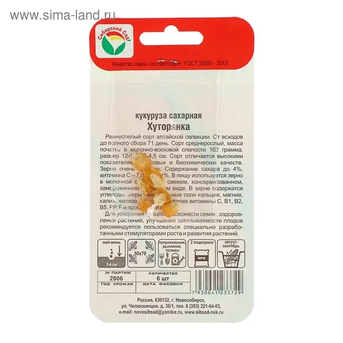 Семена Кукуруза сахарная "Хуторянка", 6 шт.