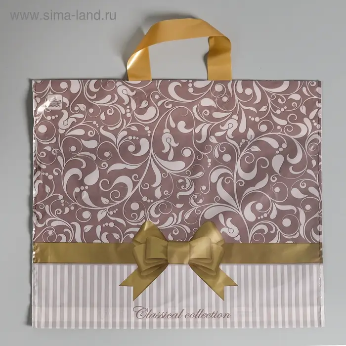Пакет "Бежевый узор", полиэтиленовый с петлевой ручкой 34 x 40 см, 70 мкм