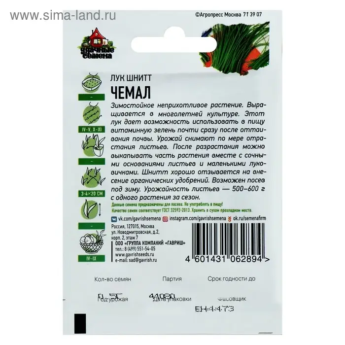 Семена Лук на зелень шнитт «Чемал», 0.5 г, «Удачные семена»