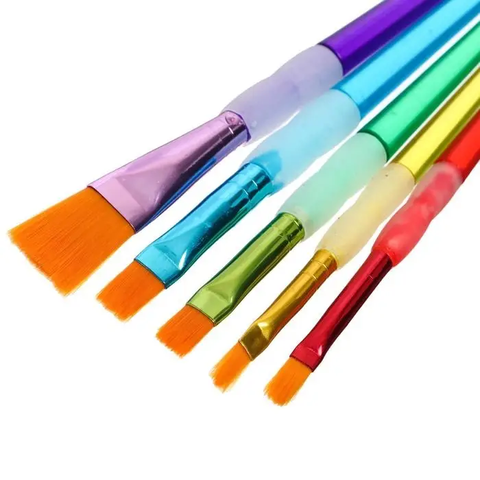 Набор кистей нейлон 5 штук, плоские, с цветными ручками, с резиновыми держателями