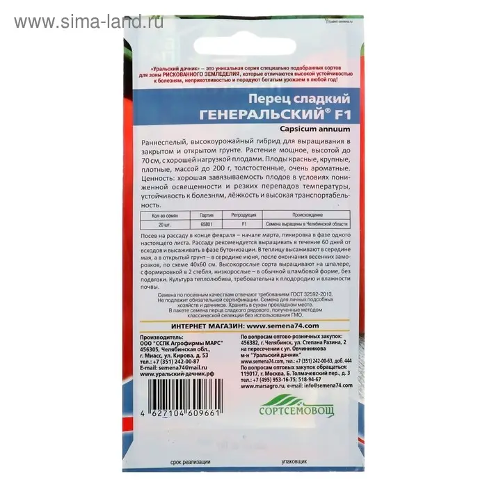 Семена Перец сладкий "Генеральский" F1, 20 шт
